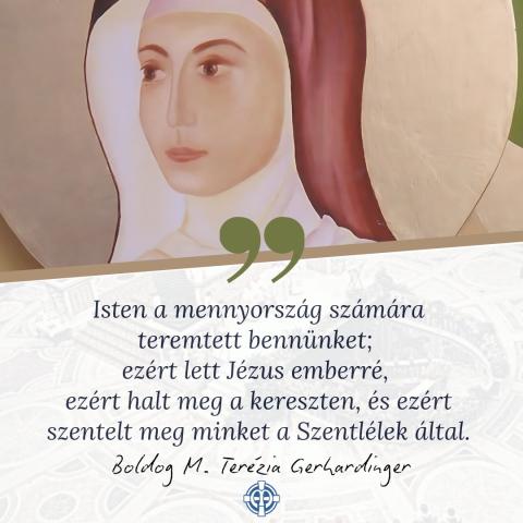 Terézia anya élete és munkássága a katolikus egyház egyik példaképévé vált: minden körülmények között hűséges, hitben megalapozott, bátor nő volt. Különleges adottsággal rendelkezett: nemcsak felismerte kora jeleit, hanem aktívan és merészen válaszolt azokra a szükségletekre, függetlenül az esetleges következményektől. A mai, igencsak komplex világban, amelyben élünk, erős vágyakozás tapasztalható a változásra, égő remény a reményre. Gondolatai és életpéldája adjon nekünk inspirációt reményünk megújítására, erősítse elkötelezettségünket a rögös úton, és járjon közben, hogy meghalljuk a Szentlélek halk hívószavát.