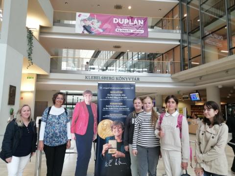 Az egyetemi könyvtárban jótékonysági festészeti maratonon vettünk részt, majd érdeklődve megtekintettük Dr. Karikó Katalin állandó kiállítását. Láttuk az eredeti Noble-díját és sok más díját, bizonyítványait, korabeli fényképeket, gyerekkoráról kutatási munkáiról.