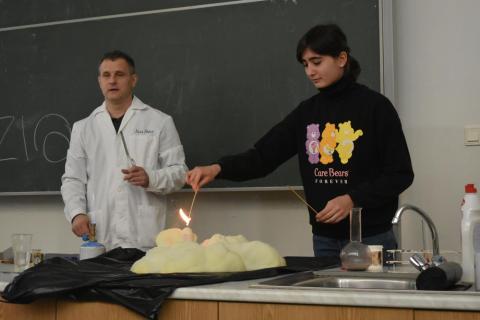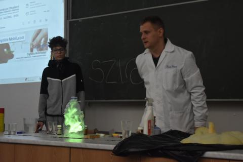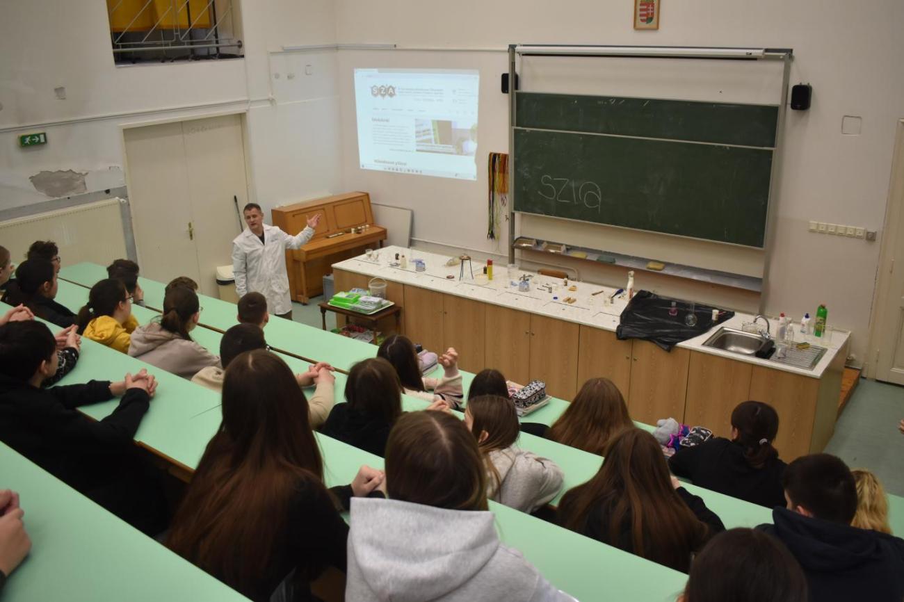 A természettudományokat is népszerűsítő szervezet tanára azzal a céllal érkezett legidősebb tanulóinkhoz, hogy felkeltse az érdeklődést a terület iránt, akár lehetséges pályaválasztási irányként is. – A legfontosabb a tantárgyat tanító pedagógus személye, aki képes a figyelemfelhívásra és az ösztönzésre a mindennapi munkájával. Ehhez szeretnék most egy kis adalékot adni, hogy a gyermekek kedvet kapjanak és megerősítést – árulta el az előadó, aki egyike annak a negyven szakembernek, aki erre az ismeretterjesztő feladatra vállalkozott az országban.