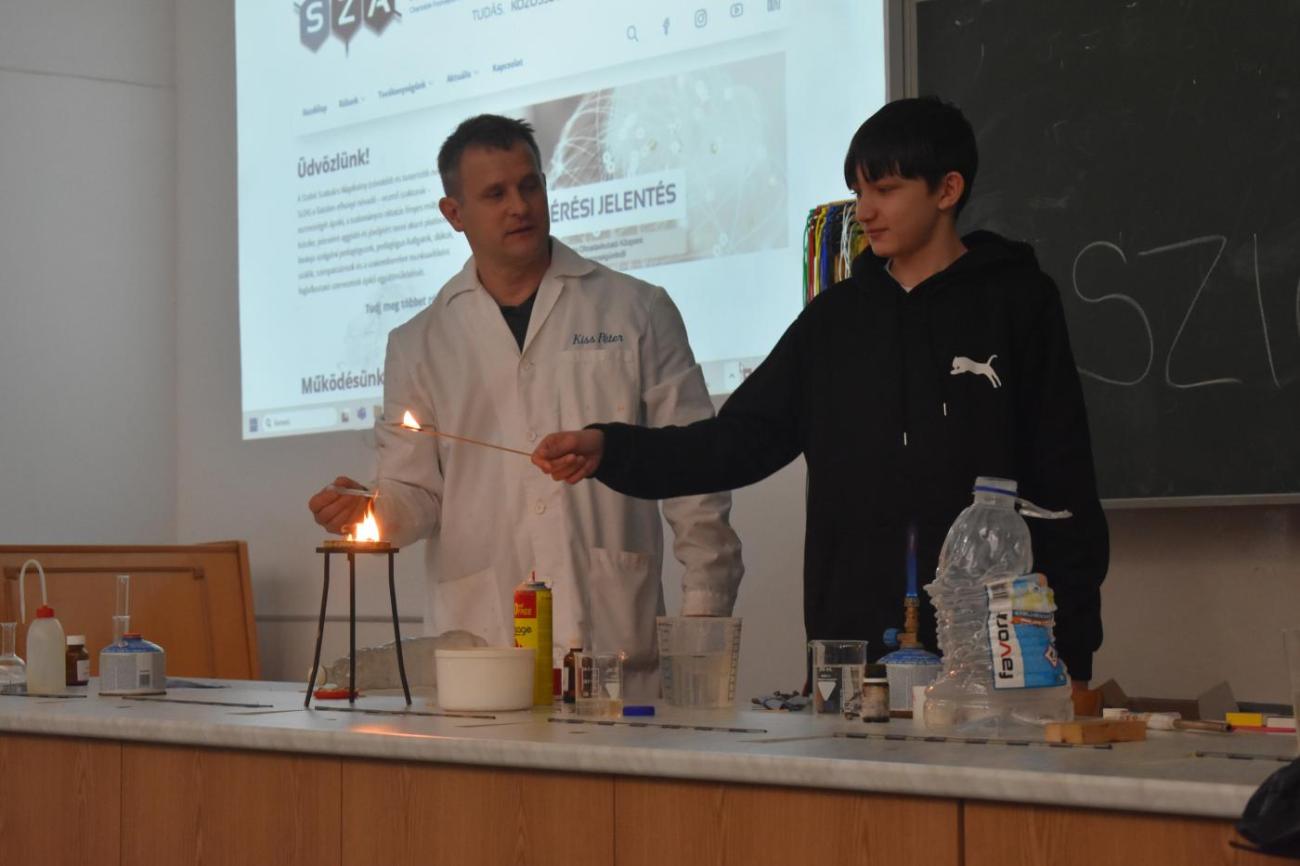 A Szabó Szabolcs Alapítvány képviseletében tartott rendkívül érdekes kémia órát Kiss Péter iskolánkban.