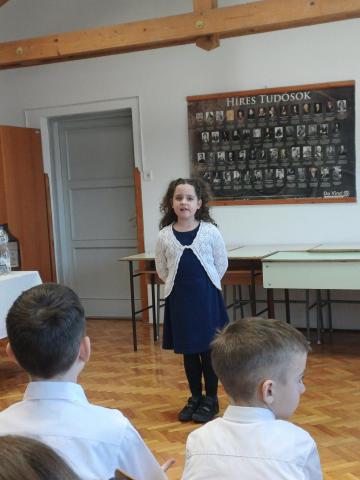 A hittanversenyen a Fodor Zsóka (5.a) csapattársaival együtt, szépen megállta a helyét, de a szoros versenyen ezúttal nem sikerült a továbbjutás.