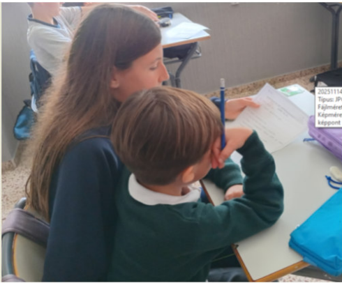 - Látogattam egy olyan órát, ahol egy tanórán keresztül (45 perc) a 6. osztályosok tanították párban az első osztályosokat – egy kiadott munkalap alapján.